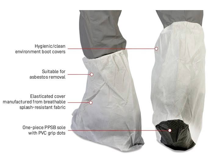 Suitable for asbestos removal, One-piece PPSB sole with PVC grip dots (T100-BCP), Elasticated cover manufactured from breathable splash-resistant fabric, Colour: White, One size fits all